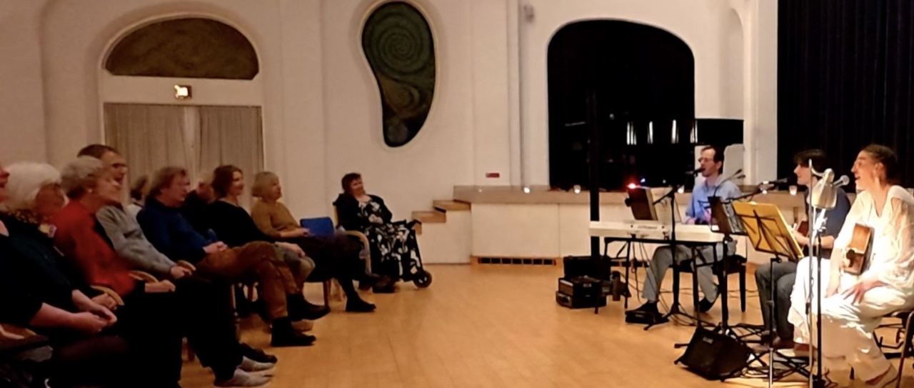 Peleh, Ghil og jeg nød at synge/spille vore sange/trestemmigt kor i Audonicons store, pyntede sal, godt støttet af det veloplagte publikum som sang livligt med på omkvæd. Tak for de smukke tilbagemeldinger og til alle jer, der mødte op, ikke mindst til dem fra København og Norge, vinterbadeklubben, Mysterieskolen…